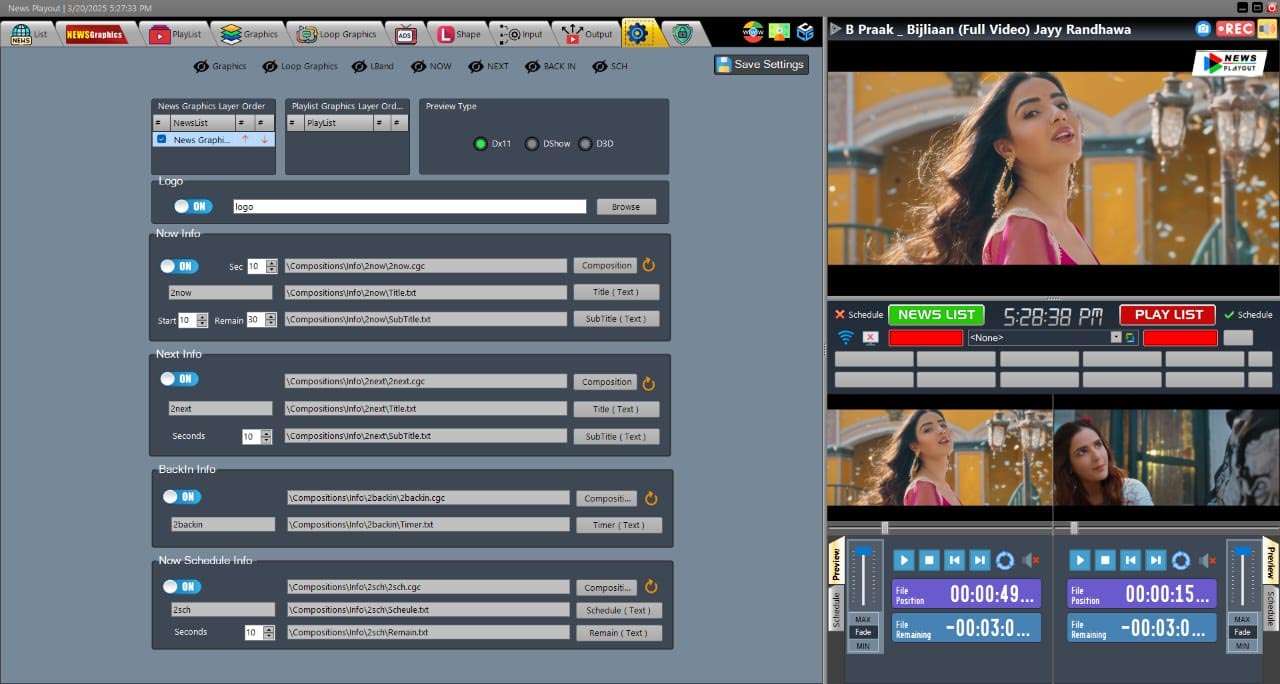 Rundown-Based Playlist Management: Intuitive interface for building and modifying news show rundowns with drag-and-drop functionality.