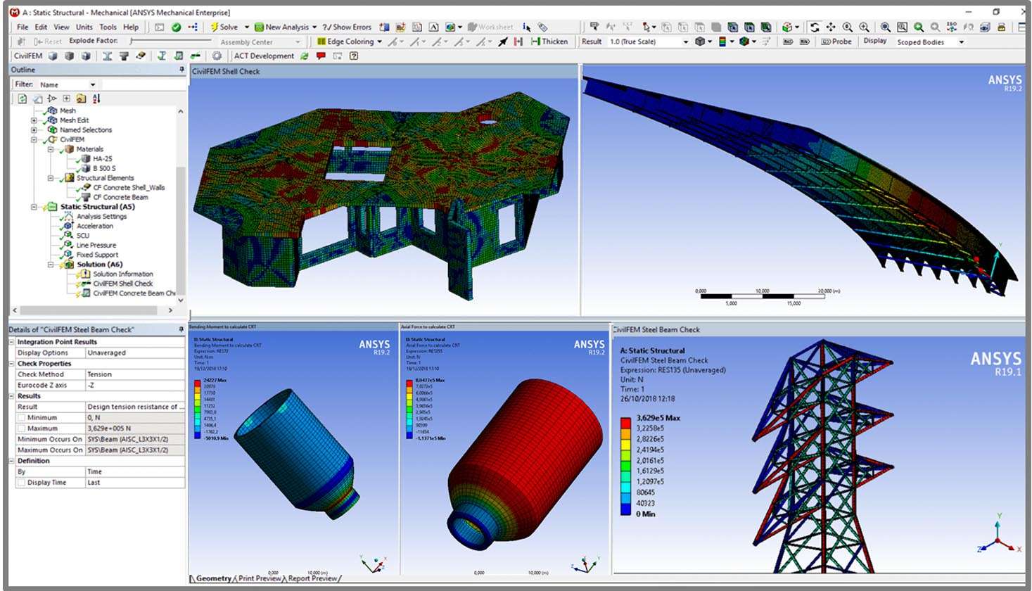 CivilFEM 2025 for ANSYS is a specialized civil engineering environment built on top of ANSYS Mechanical, adding industry-specific tools, materials, load types, and code-checking capabilities tailored for civil infrastructure projects. It transforms general-purpose ANSYS into a civil engineering-focused platform with pre-configured workflows for concrete design, steel structures, geotechnics, bridges, and nonlinear analysis. CivilFEM maintains full compatibility with ANSYS Workbench while adding hundreds of civil-specific features.
