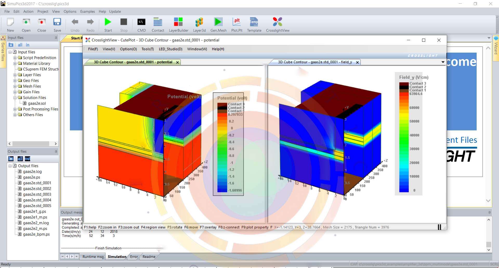 PICS3D software is a 3D finite element simulator of photonic integrated circuits and is used for optical, electrical, and thermal simulation of edge and surface emitting laser diodes, semiconductor optical amplifiers (SOA), and other active waveguide devices.