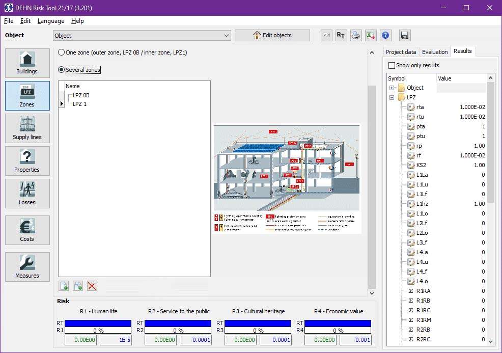 With the DEHN Risk Tool you create a risk analysis. Assess the potential risk of buildings or structures, taking into account the characteristics and purpose of the building. Here, specific protective measures can be taken to reduce the risk. For risk analysis in an international context, you plan based on country-specific standards and regulations and the corresponding calculation values.