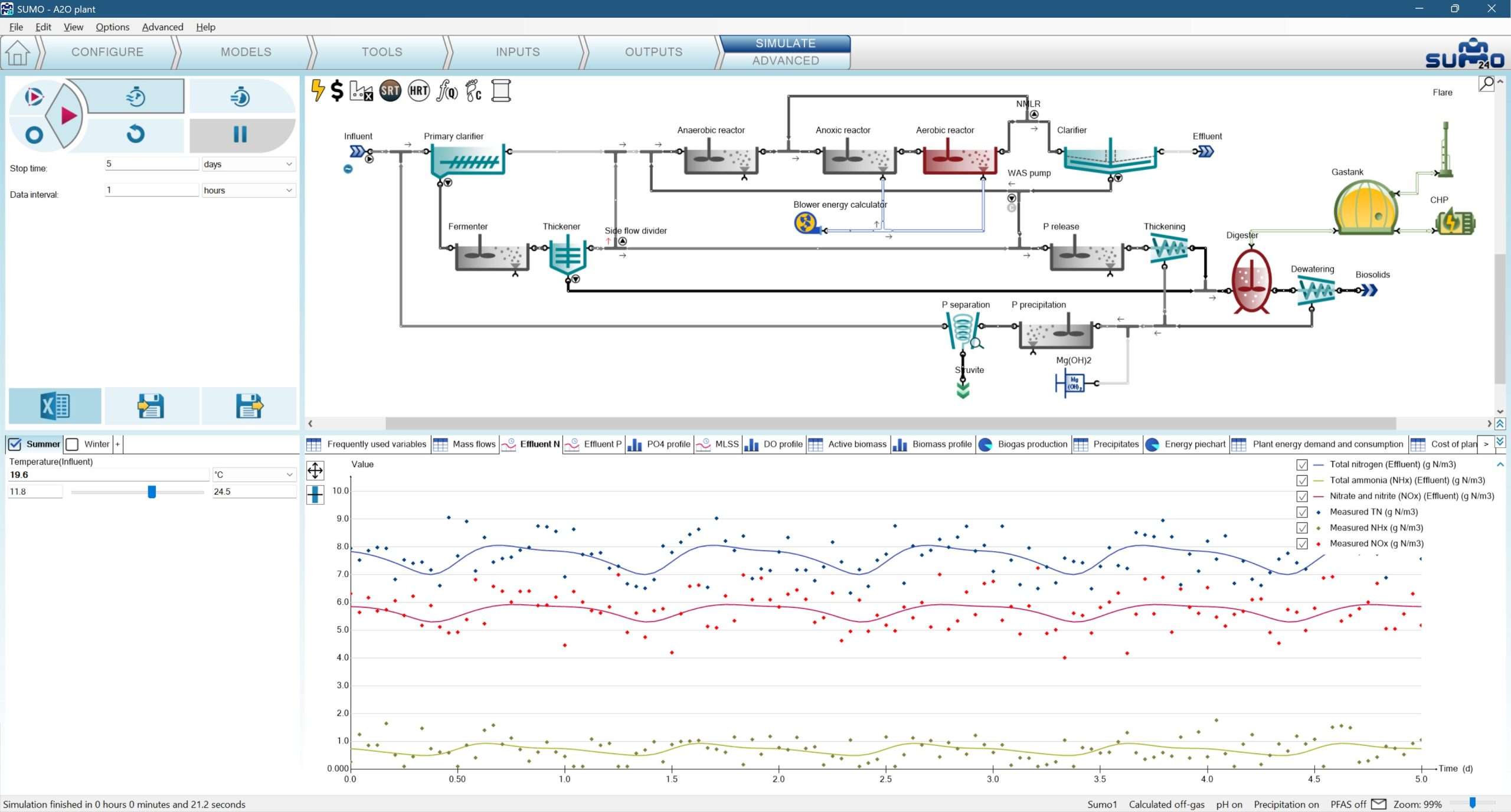 Comprehensive Influent & Weather Data Management: Model complex influent characteristics (COD fractions, TKN, etc.) and integrate weather data (temperature, rain) to assess their impact on plant performance.