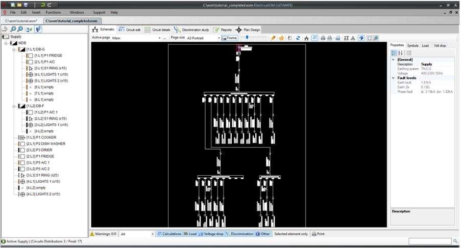 ElectricalOM is a Powerful, Fast & Accurate software tool for Domestic, Commercial and Industrial Low Voltage Electrical Design. Using ElectricalOM, the user can model the electrical installation quickly and easily by performing simple tasks while the software acts interactively performing automatic calculations, checks and automatically creates all schematic diagrams.