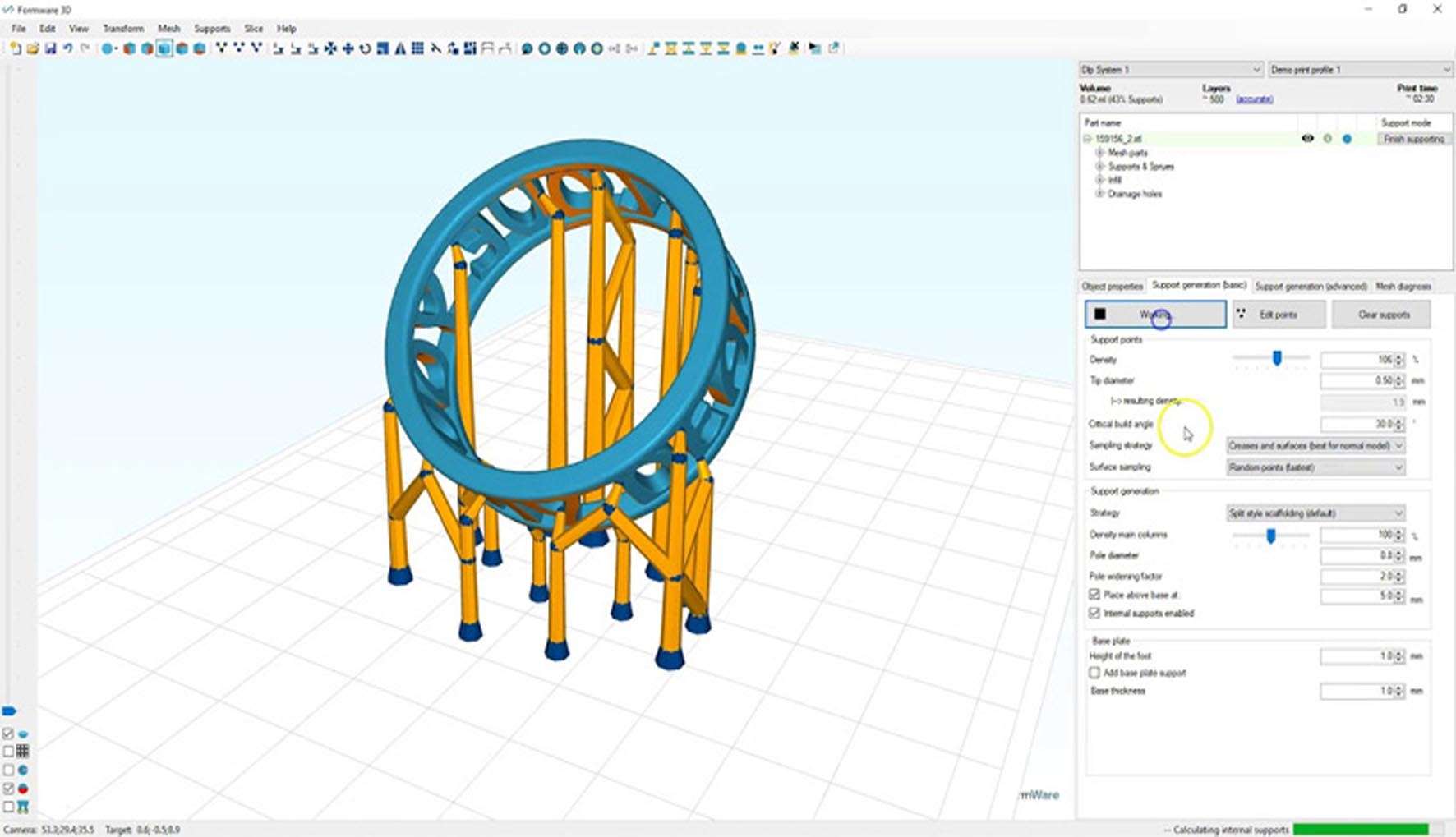 Custom Support Generation: Advanced tools for generating tree-like and block supports with fine control over density, contact points, and patterns.