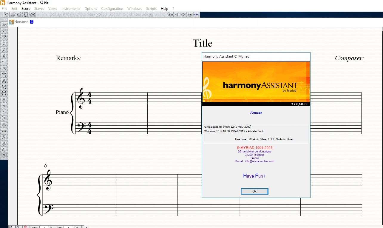 Harmony Assistant is a comprehensive music notation and composition software that enables musicians to write, edit, and playback musical scores. It provides a full-featured environment for creating professional-quality sheet music, from simple lead sheets to complex orchestral arrangements. The software combines traditional notation tools with intelligent harmony and accompaniment features, helping users experiment with chord progressions, generate backing tracks, and hear their compositions realized with realistic instrument sounds. It serves as a versatile tool for both the creative process and the practical task of producing readable, performable musical scores.