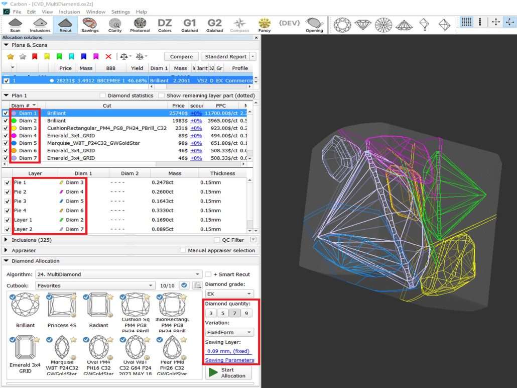 Standard Cut Libraries: 500+ pre-designed cuts (brilliant, step, mixed, fancy shapes)