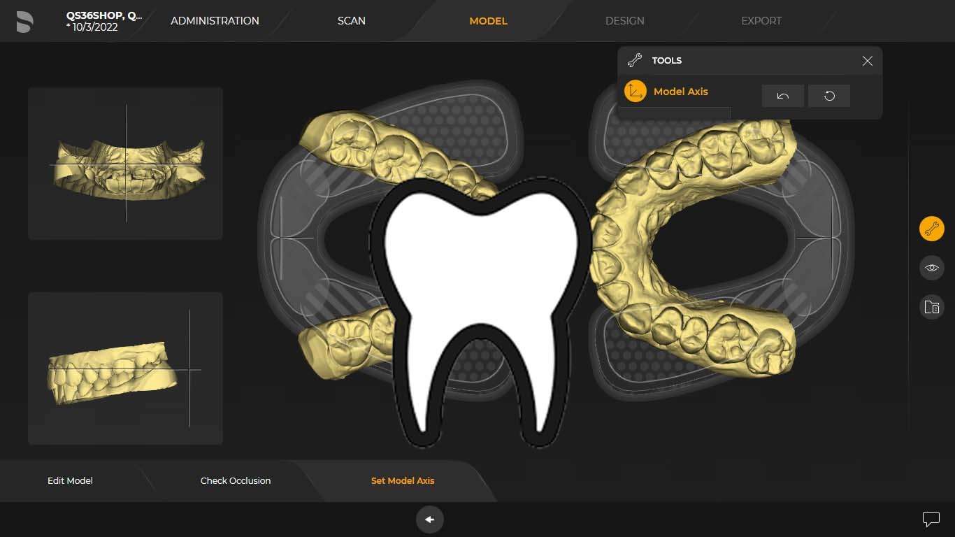 • Design with inLab App: Splints, custom trays, solid models, working model, thermoforming model, partial frameworks
