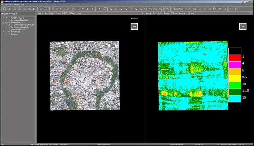 It also caters to UAV-specific data processing needs, such as aligning point clouds, fitting Ground Control Points (GCP), classifying excessive coverage areas, coloring point clouds, and ensuring data quality.