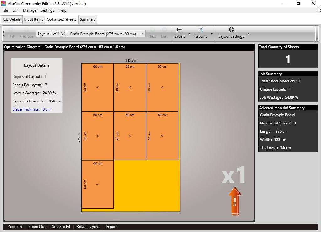 MaxCut software is designed to produce accurate cutting plans and cost estimates for the woodworking, cabinetmaking and metalworking industries. It works very simply: the user enters the required dimensions and materials, and MaxCut does the rest. With just one click, the program can generate optimized cutting plans, cost estimates, purchase orders and necessary labels. This tool allows users to make their planning and production processes significantly faster, more efficient and more accurate, ultimately reducing raw material waste and saving time and money. With its intuitive user interface, the system quickly puts even new users on the path to effective use of the software’s features.