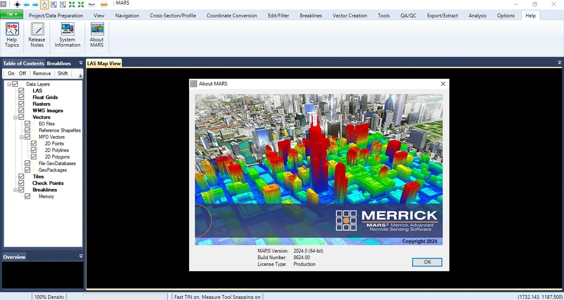 Merrick MARS (Merrick Advanced Remote Sensing) is a comprehensive Windows-based software suite for visualization, management, processing, and analysis of LiDAR point cloud data. Developed by Merrick & Company, this powerful platform supports both novice users and experienced professionals in extracting valuable geospatial information from raw aerial data. Its intuitive workflow and advanced tools make it a leading solution for converting massive point clouds into actionable intelligence for engineering and mapping projects.