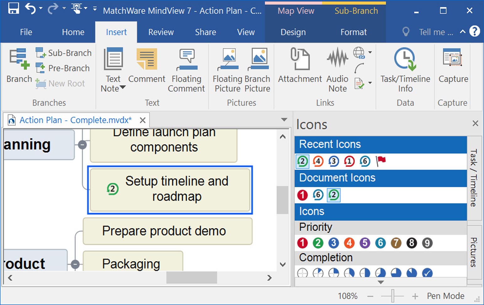 · Rich Content: Attach notes, icons, images, hyperlinks, and attachments to any branch.