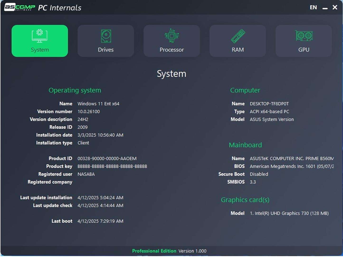 PC Internals Pro 2.003 is an advanced system profiler, diagnostics, and monitoring utility for Windows. It provides deep, low-level access to hardware sensors and system components, offering a complete view of the computer’s internals far beyond what standard Windows tools can show. The software is used to identify exact hardware models, monitor temperatures and voltages, stress test components, verify system stability, and gather critical information for driver updates or troubleshooting.
