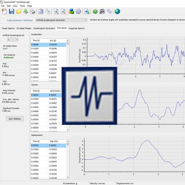 SeismoArtif is a software for creating artificial earthquake motions corresponding to a specific response spectrum using different calculation methods and various hypotheses. It should be noted that by using real accelerometers and spectrum matching techniques together with record selection tools, you can obtain a set of records for nonlinear dynamic analysis of new or existing structures.