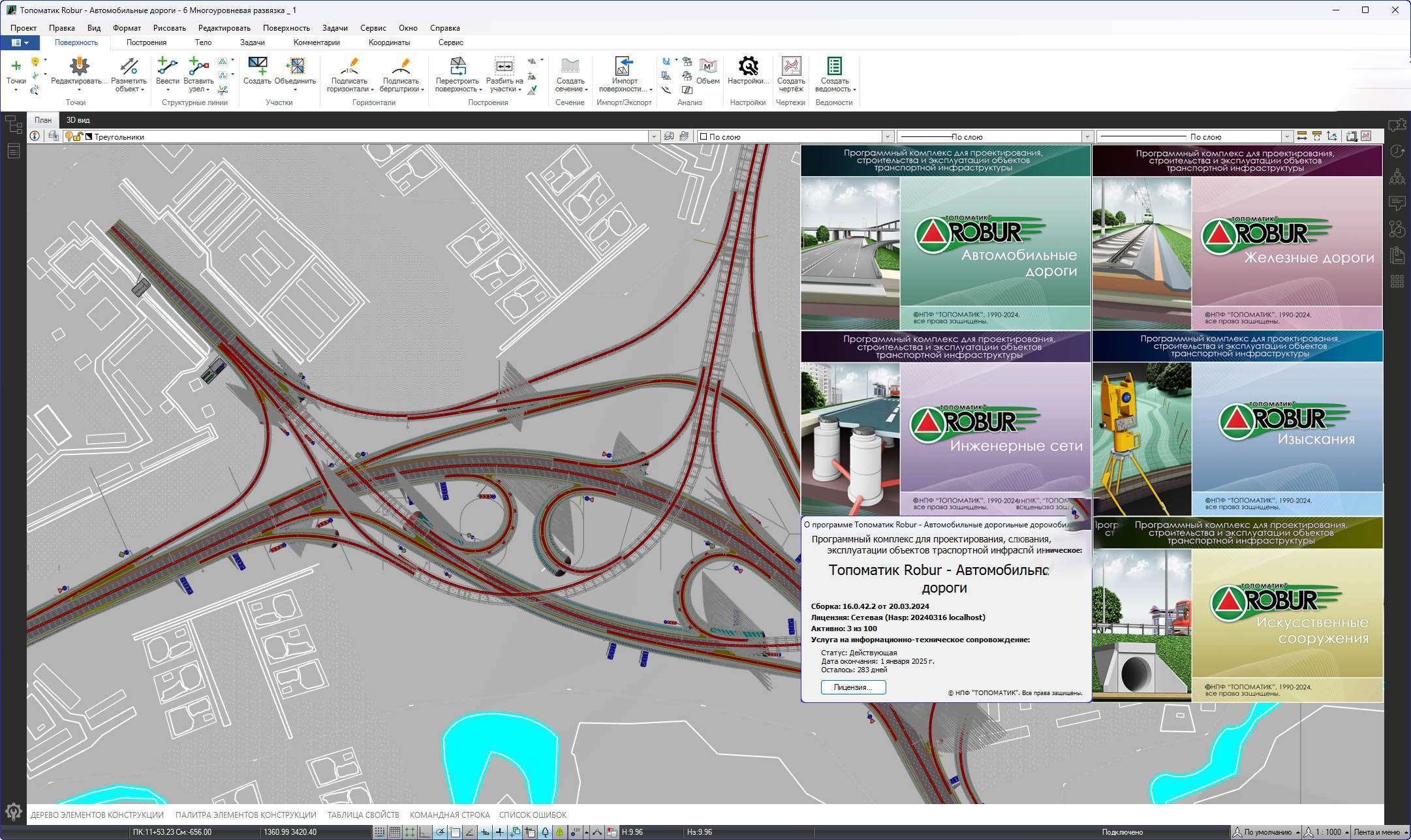 The package is designed for designing category IV highways and city streets. Includes modules for processing geodetic data, designing a plan, profile and cross-sections, leveling the surface and evaluating the design solution. It is intended for use both in design organizations and in road construction companies.