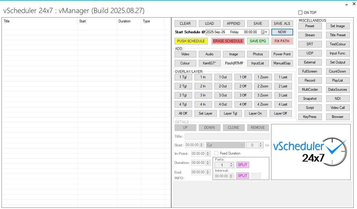 vScheduler 24×7 is an automated way to schedule programming: