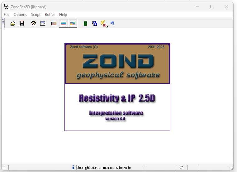 Available Zond Softwares: ZondST 2D 7.0 , ZondST 3D 4.0 , ZondVES IP 1D 7.0 , ZondRes 2D 7.0 , ZondRes 3D 7.5 , ZondMT 1D 7.0 , ZondMT 2D 7.0 , ZondGM 2D 5.0 , ZondGM 3D 3.0 , ZondSP 2D 5.0 , ZondTEM 1D 7.0 , ZondTEM 2D 2.0 , ZondProtocol , ZCGViewer , Zond MT-Corrector